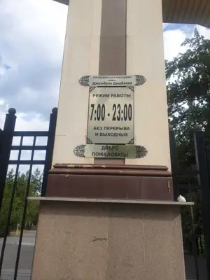 Алматыдан небәрі 40 шақырым жерде Есік деген қала бар. Халық тығыз орналасқан Еңбекшіқазақ ауданының әкімшілік орталығы. Сол қаланың Жамбыл атындағы жастар саябағындағы орысша тілінде ілінген тақтайшада әлі күнге дейін «парк имени Джамбула Джабаева» деп жазылып тұр.