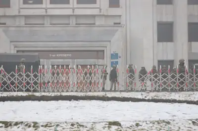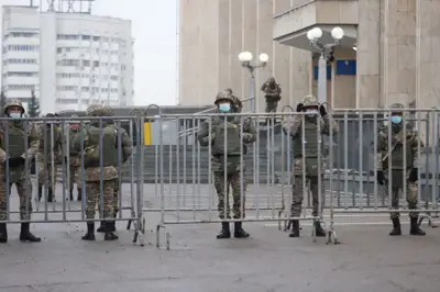 Таңғы сағат 10.00-де әкімдік маңындағы алаңда шеруге шыққандар байқалмайды. Әскерилер қала әкімшілігі ғимаратын қоршауға алған.