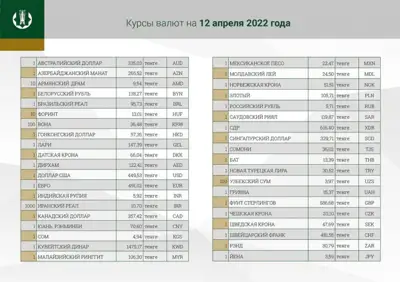 Доллардың 12 сәуірдегі ресми бағамы белгіленді