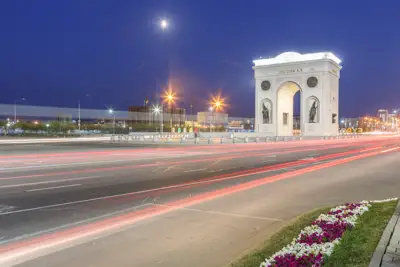 «Мәңгілік Ел» салтанат қақпасы Тұңғыш Президент Нұрсұлтан Назарбаевтың бастамасымен 2011 жылғы 16 желтоқсанда Қазақстан Тәуелсіздігінің 20 жылдығына орай ашылды. «Алтын қиманың» дәл сақталуының арқасында монумент мінсіз үйлесімге ие. Оның қуыстарында ақсақал-данагөй, әйел-ана, ортағасырлық батыр, қазіргі заманғы жауынгердің көлемді қола мүсіндері орнатылған. Екі жағында Қожа Ахмет Яссауи кесенесіндегі «Тай-қазан» көшірмесі орнатылған. Сәулет құрылымының биіктігі 20 м, бұл ел Тәуелсіздігінің 20 жылдығына орай ашылған. Оның алдыңғы бетінде жауынгер мүсіні, екіншісінде қазіргі Қазақстан армиясы әскери қызметшісінің мүсіні бейнеленген. Құрылымның жоғарғы жағында Қазақстан Республикасы Конституциясының бірінші бабынан алынған жазуды оқуға болады.
