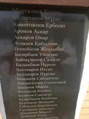 БҚО-ның Жымпиты ауылында Ауған соғысына қатысқан интернационалист-сарбаздарға қойылған ескерткіш тақтадағы қайтыс болған жауынгерлердің тізіміне көзі тірі, ортамызда дін аман жүрген ардагерлердің есімдері еніп кеткен.
