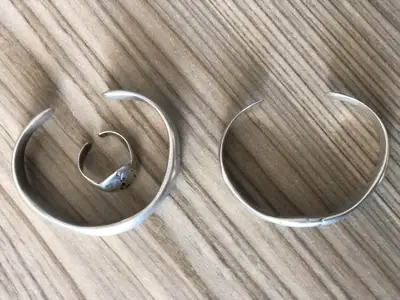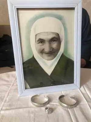 (Рақымжанның кіндік шешеге тарту еткен күмістен жасалған зергерлік бұйымы)
