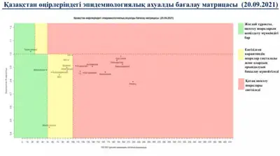 2021 жылғы 20 қыркүйектегі жағдай бойынша Қазақстан өңірлеріндегі эпидемиологиялық ахуалды бағалау матрицасы жарияланды, — деп хабарлайды «Жас Алаш».