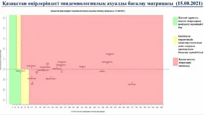 15 тамыздағы жағдай бойынша Қазақстан өңірлеріндегі эпидемиологиялық ахуалды бағалау матрицасы жарияланды.