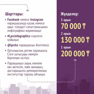 Құқықтық саясатты зерттеу орталығы "Қазақстандағы демократиялық институттар" тақырыбындағы инфографика жұмыстарына конкурс жариялайды.