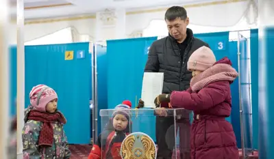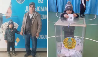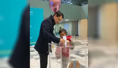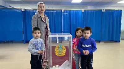 Қарапайым азаматтар арасында да сайлауға бала-шағасын ертіп келіп, дауыс бергендер көп. Azattyq Ruhy камерасының нысанына іліккен мына бір азамат таңдау жасаған бюллетендерін үш баласына ұстатып, дауыс беру жәшігіне салғызып жатыр.