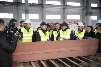 Қорап өндірісін көзбен көрген ҚР Индустрия және инфрақұрылымдық даму министрі темір-бетон шығаратын «ПК Алтын Таға» ЖШС-не барды.