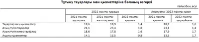 2022 жылдың қазанмен салыстырғанда қарашада азық-түлікке жатпайтын тауарлар бағасы 1,6% өсті. Дизель отыны – 13,9%, тас көмір – 2,6%, ағаш отыны 1,6% қымбаттады. Жуу және тазалау құралдарының бағасы 4,1%, жеке пайдаланылатын тауарлардікі – 2,8%, киім және аяқкиім, ыдыс, тоқыма бұйымдары 1,6% өсті.