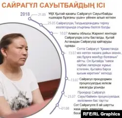 /> 2018 жылы тамызда Алматы облысы Панфилов аудандық соты Сайрагүл Сауытбайды айыпты деп тану және алты айға бас бостандығынан айыруға үкім шығарған, бірақ оның жазасын "жеңілдететін ерекше жағдайына" байланысты шартты жазаға ауыстырған. Сот Сайрагүл Сауытбайды Қытайға депортацияламай, Қазақстанда қалдырған. Бірақ Қазақстан билігі Сауытбайға босқын мәртебесін бермеді.