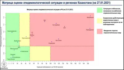 COVID-19 бойынша эпидемиологиялық жағдайды бағалау матрицасына сәйкес, Қазақстан да "қызыл" аймақта орналасқан.