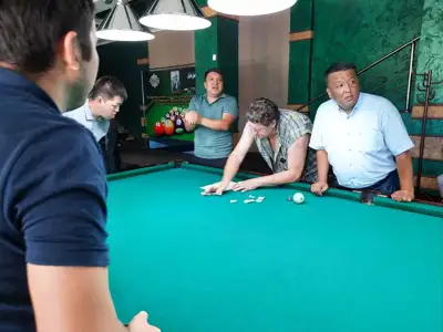 Бильярд бәйгесіне Алматы, Шымкент, Түркістан облысының БАҚ өкілдері қатысып жатыр.